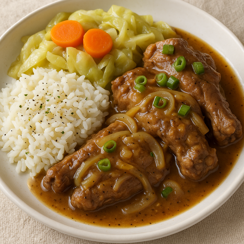 Serve over white rice or rice and peas with a side of steamed cabbage.